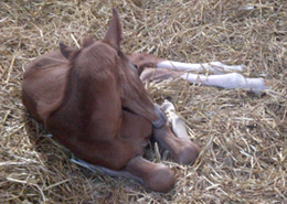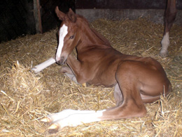 3 Wochen über der Zeit aber völlig unkompliziert und ganz schnell brachte unsere Hengstmutter Comteß Corlana ein sehr elegantes und super bemuskeltes Fuchsfohlen zur Welt.