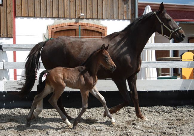Der 2. Hengst folgte am 17.4. aus unserer Hengstmutter Comtess Corlana v. Werthers Wels. Der hoch nobler Sohn des Gand Prix-Siegers Lingh überzeugte durch seine enorme Schulterfreiheit bei einer Leichtigkeit im Bewegungsablauf. Der angehende Dunkelfuchs begeistert zudem durch seine exzellente Oberlinie und seinem frechen Gesicht.